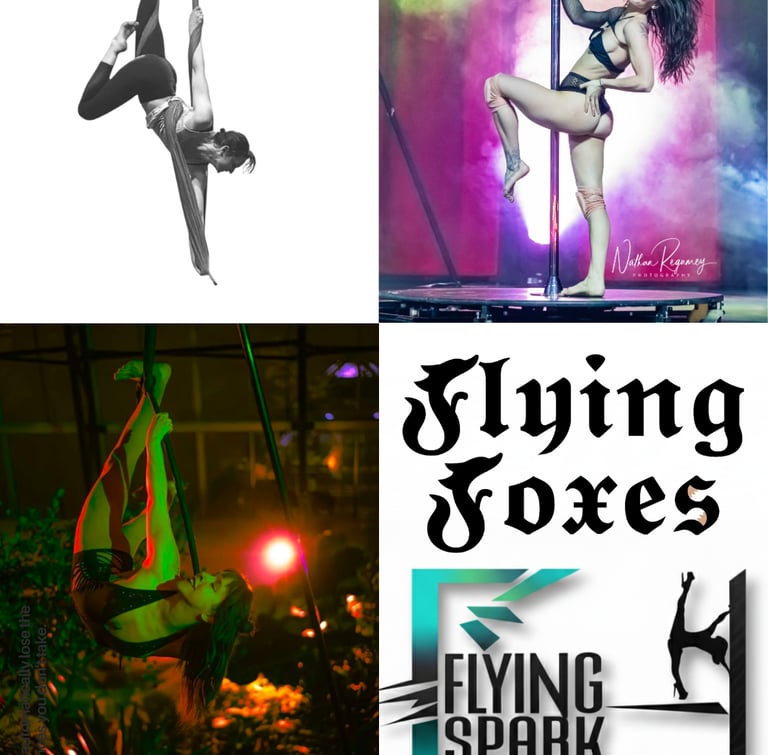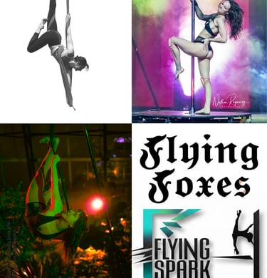 The Flying Foxes & The Flying Spark are a powerhouse circus trio who captivate audiences with a dazzling fusion of aerial artistry, pole, acrobatics, and fiery flow. With roots in dance, circus, and movement, they bring together years of training, unmatched skill, and magnetic stage presence. Their performances radiate energy, sensuality, and playfulness—igniting the stage with unforgettable sparks every time they take flight.