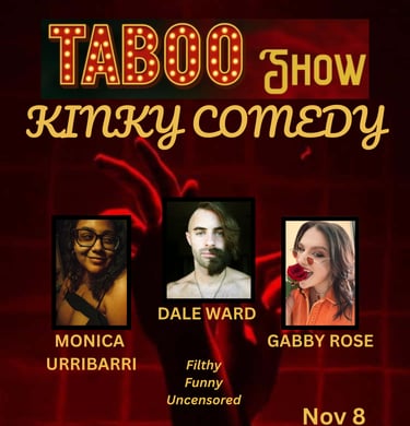 Get filthy, funny, and uncensored at Kinky Comedy Night! This wild show brings together three unforgettable comedians: Dale Ward, a touring pro who’s worked with Bill Burr and Tom Segura, featured on Just For Laughs, and seen by millions on TikTok. Gabby Rose, a queer comic blazing across Canada with raw, dynamic, and brutally honest storytelling. And Monica Urribarri, Venezuelan-born, armed with deliciously dirty jokes that bite. One night only: Saturday, November 8 at 10:30 PM in the Naughty Secrets Seminar Theatre.
