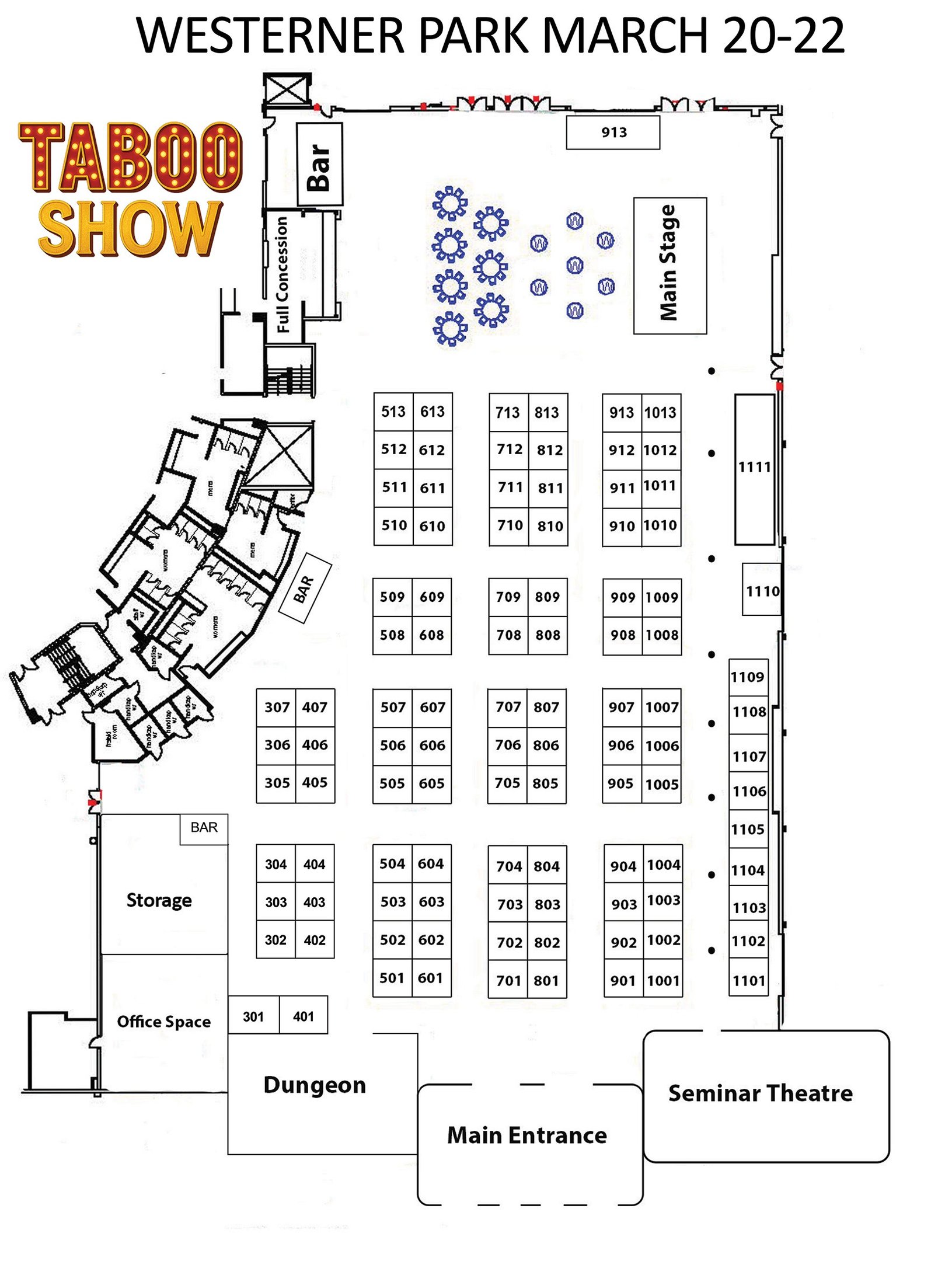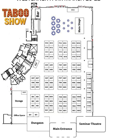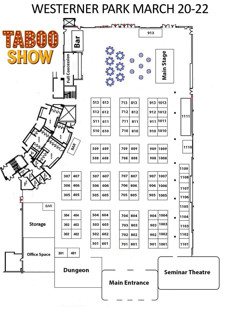 💡 Lighting Tip: The Taboo Show floor is dimly lit — ordering power or bringing battery-powered lighting is strongly recommended.