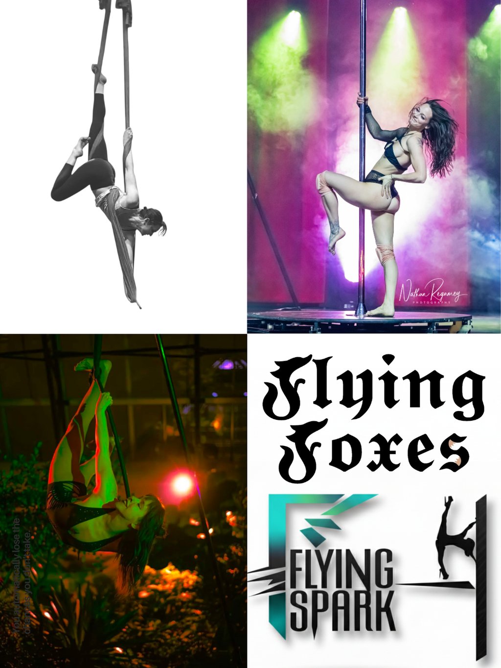The Flying Foxes & The Flying Spark are a powerhouse circus trio who captivate audiences with a dazzling fusion of aerial artistry, pole, acrobatics, and fiery flow. With roots in dance, circus, and movement, they bring together years of training, unmatched skill, and magnetic stage presence. Their performances radiate energy, sensuality, and playfulness—igniting the stage with unforgettable sparks every time they take flight.