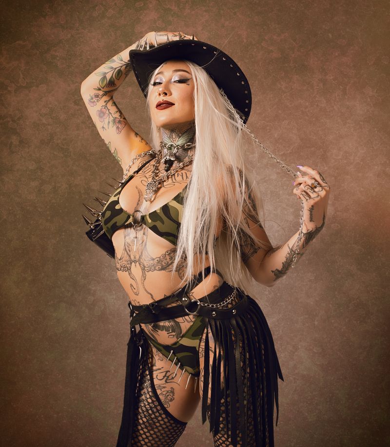 Meet Kruella Kraken, a dynamic and alternative force in the adult entertainment world with over ten years of experience that pushes the boundaries of artistry. This goth queen is known and celebrated for her striking tattoos and unapologetic style, earning her title as a 3x Miss Nude Alberta and Stripperlympics Champion. As a pole dancing champion and a standout performer, Kruella has graced the stages alongside notable acts like Snoop Dogg, Puddle of Mudd, and Falling in Reverse. Her unique talents extend beyond traditional dance; She is also an accomplished fire performer and contortionist, captivating audiences with stunning displays of strength and flexibility. Featured in Inked Magazine and various tattoo publications, Kruella is a proud recipient of the Miss New World Inked title, showcasing her passion for both performance and art. Whether in a cemetery or under the spotlight, Kruella continues to redefine the art of performance.