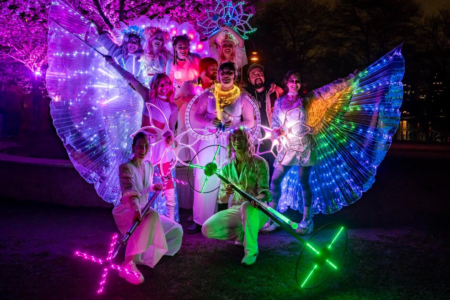 Ember Arts share their passion for the flame to engage, teach, collaborate and create large-scale unique fire shows in a safe, supportive environment. Members have diverse backgrounds in movement, dance, martial arts, and circus. Together, they have performed long and short-format LED and fire shows at numerous community festivals, private and corporate events around Vancouver, at Burning Man, and regional events.